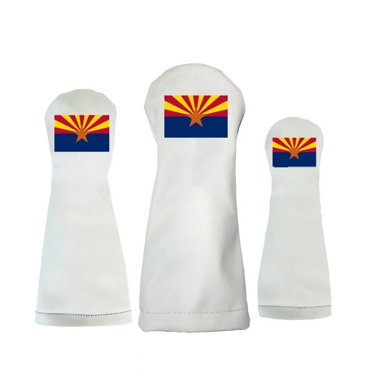 Arizona Flag Golf Headcovers are hand made from high quality Dura-Leather. Elastic waistband and fleece lining keep your clubs safe and secure. Available in set of three or individual driver, fairway and hybrid sizes.