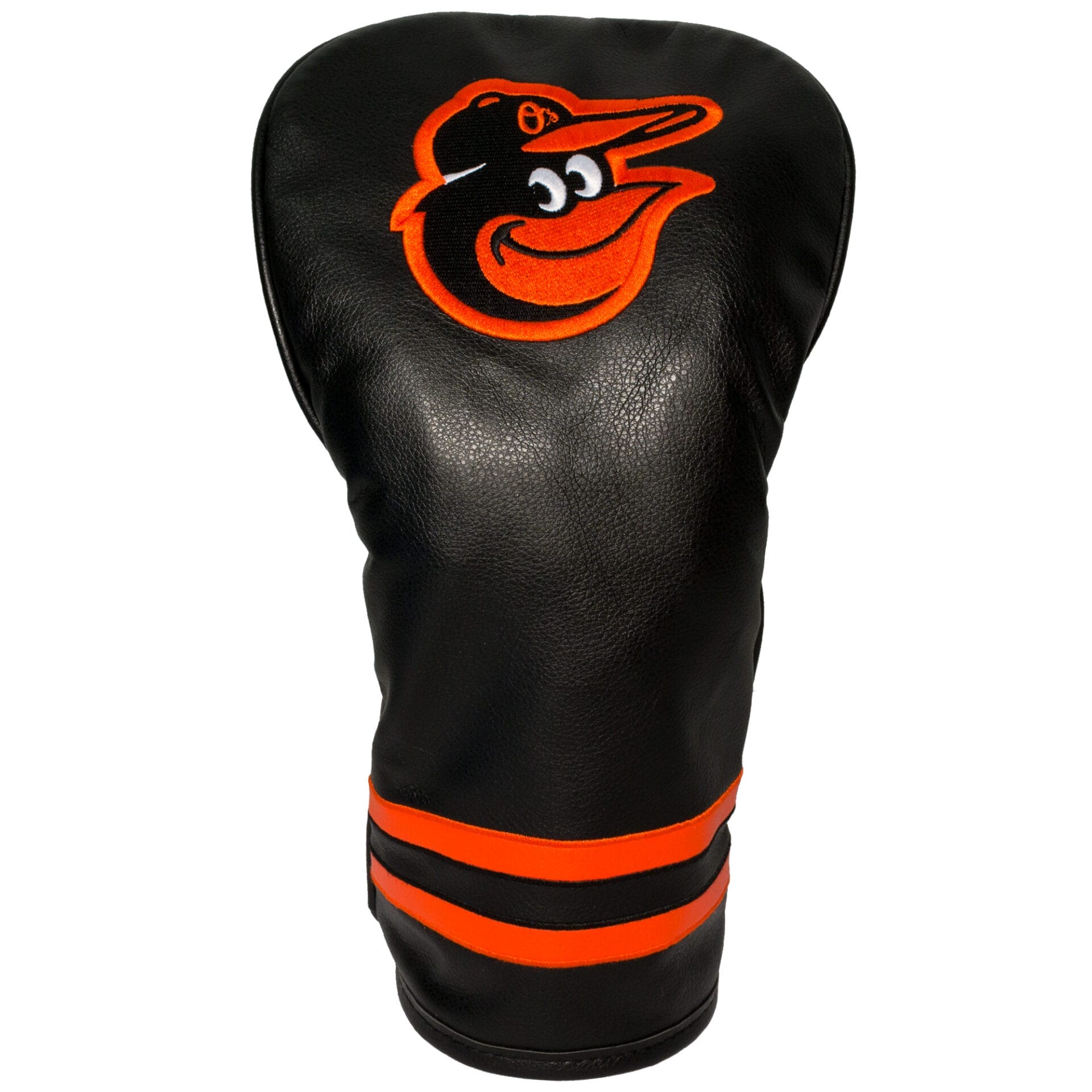 Baltimore Orioles Vintage Driver Golf Headcover. Fits clubheads up to 460cc. Made of durable synthetic leather with soft lining to protect your club.