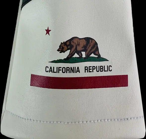 California Flag Driver Golf Headcover is hand made from high quality Dura-Leather. Elastic waistband and fleece lining keep your clubs safe and secure. Fits clubs up to 460cc.