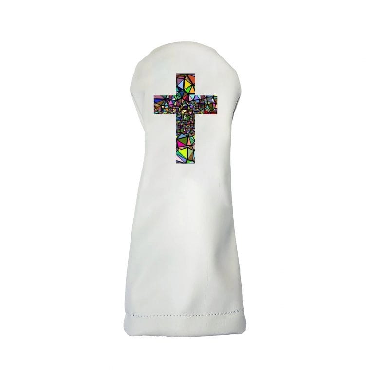 Christian Cross Religion Jesus Driver Golf Headcover made of high quality Dura-Leather and fits clubs up to 460cc. Elastic waistband and soft inner lining.