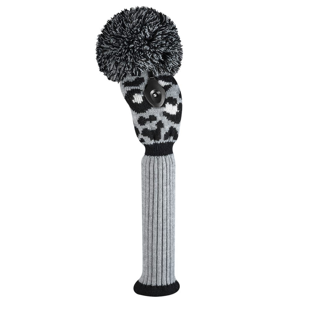Gray Black White Leopard Fairway Golf Headcover. Unique Leopard knit design with matching oversize pompom. Includes adjustable number tag. Spandex built into the neck for a secure fit. You’re sure to stand out with this unique design.