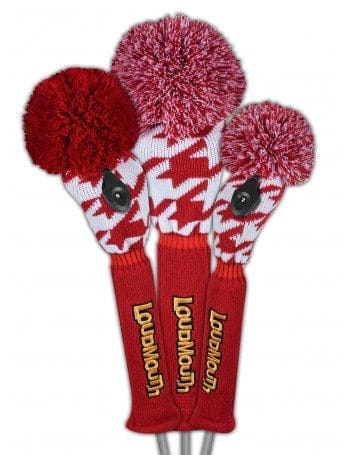 The Loudmouth Red Tooth golf headcover set looks great in scarlet & white to make a LOUD statement out on the course!