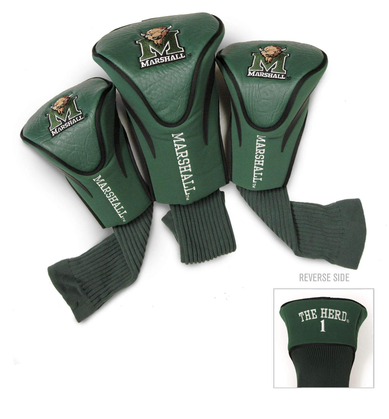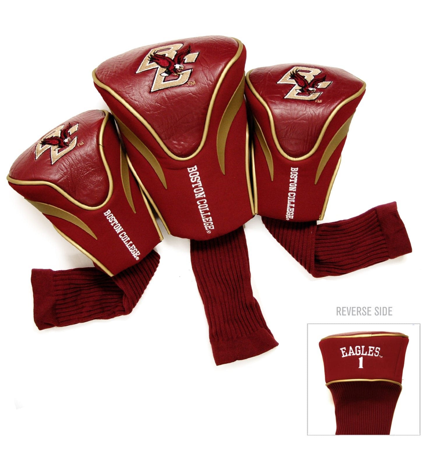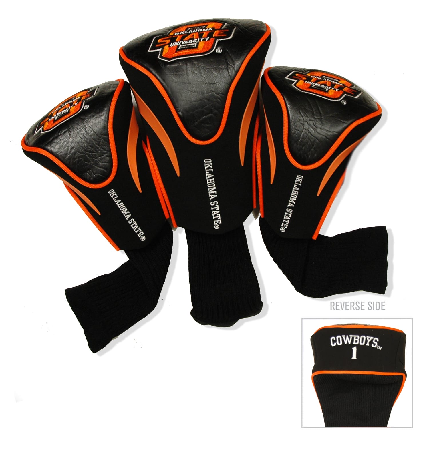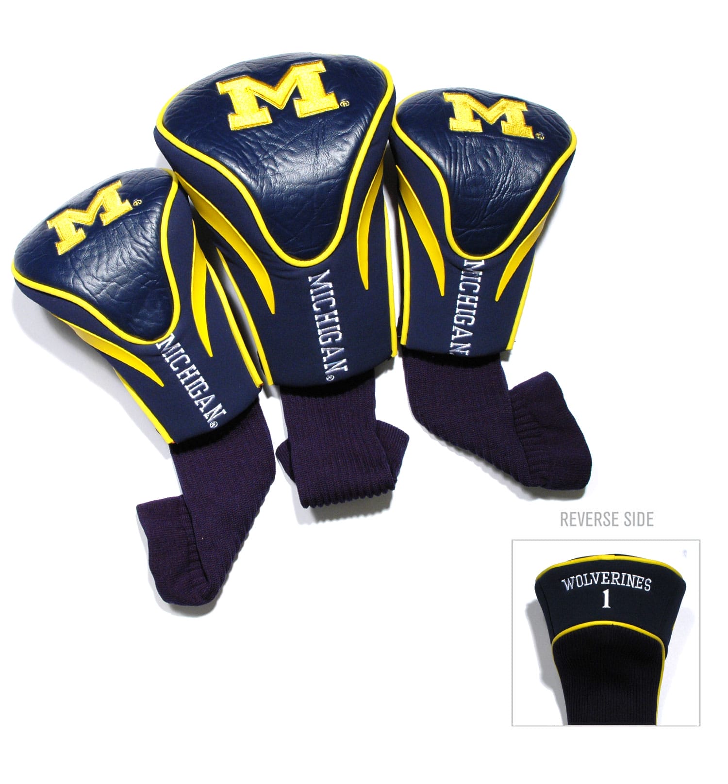 NCAA Golf Headcovers Set contains 3 sock headcovers with sleek contour shape numbered 1, 3, and X. The #1 fits all oversized drivers.