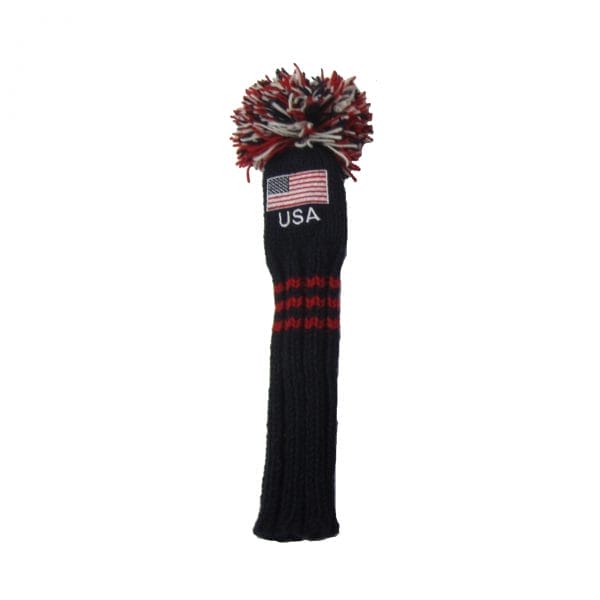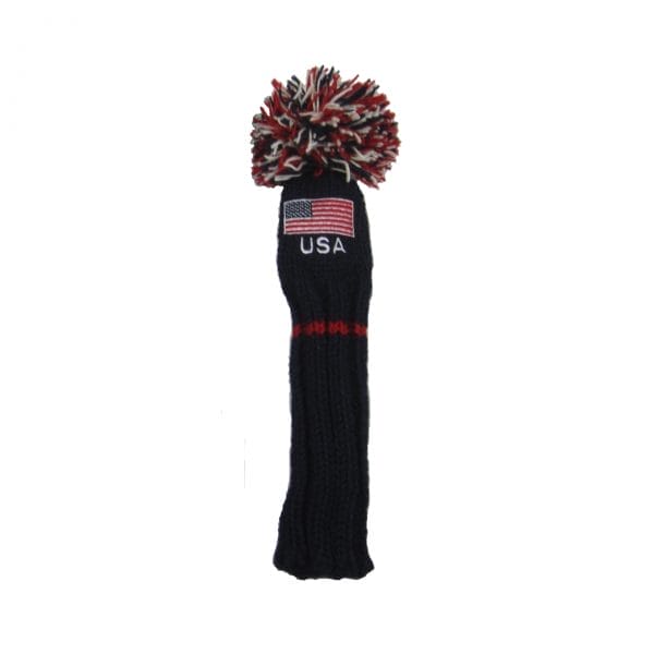 Old Glory Knit Golf Headcovers are made of 100% hand knit New Zealand Wool. They have elastic built in for a secure fit. Driver headcover fits clubheads up to 460cc. Available individually or sets. Set includes driver, fairway and hybrid headcovers. Body is Navy Blue with red stripe. Pom Pom is red white and blue. US flag and USA embroidered.