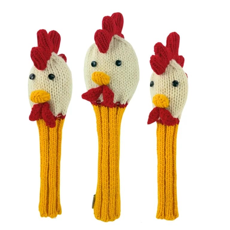 Inspired by the bold, bossy confidence of a rooster, these headcovers feature a sculpted knit design with a proud red comb, bright yellow beak, and expressive details that feel equal parts charming and mildly confrontational. A classic-meets-chaos look that’s impossible to ignore. It’s playful, it’s confident, and it has big “runs the barn” energy.