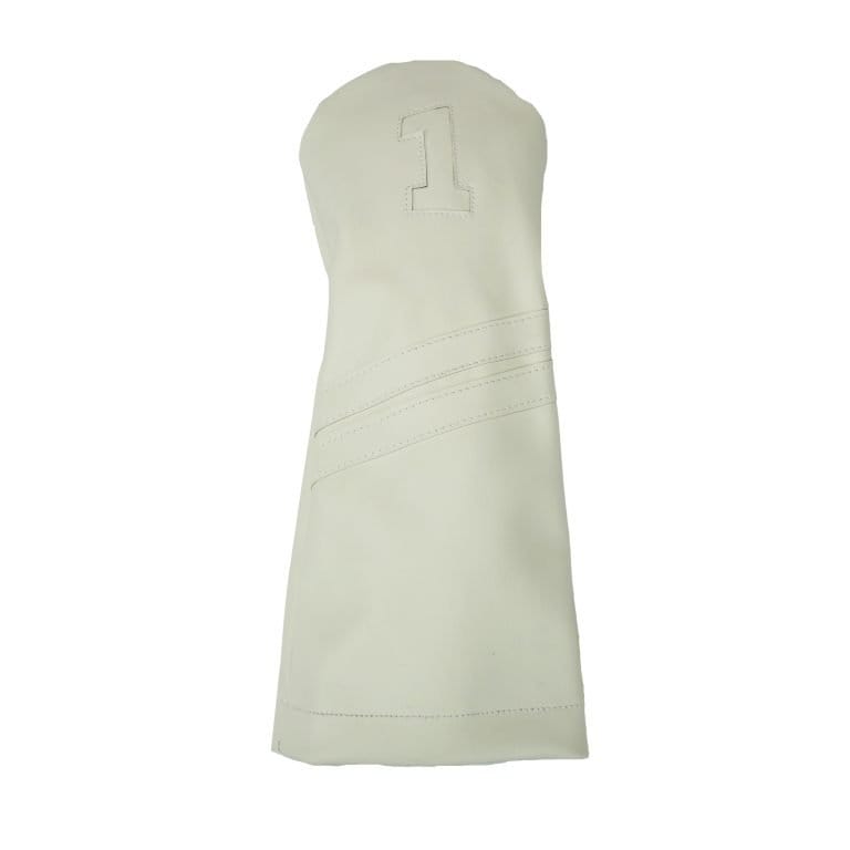 White Out Golf Headcovers made of Dura-Leather. Available in Set of three or individually in driver, fairway and hybrid sizes. Made of 100% hand-stitched Dura-Leather that will not fade in the sun or stretch out of shape. Flannel lining to keep your club from nicks and scratches and elastic waistband for a secure fit. Driver headcover fit clubs up to 460cc.